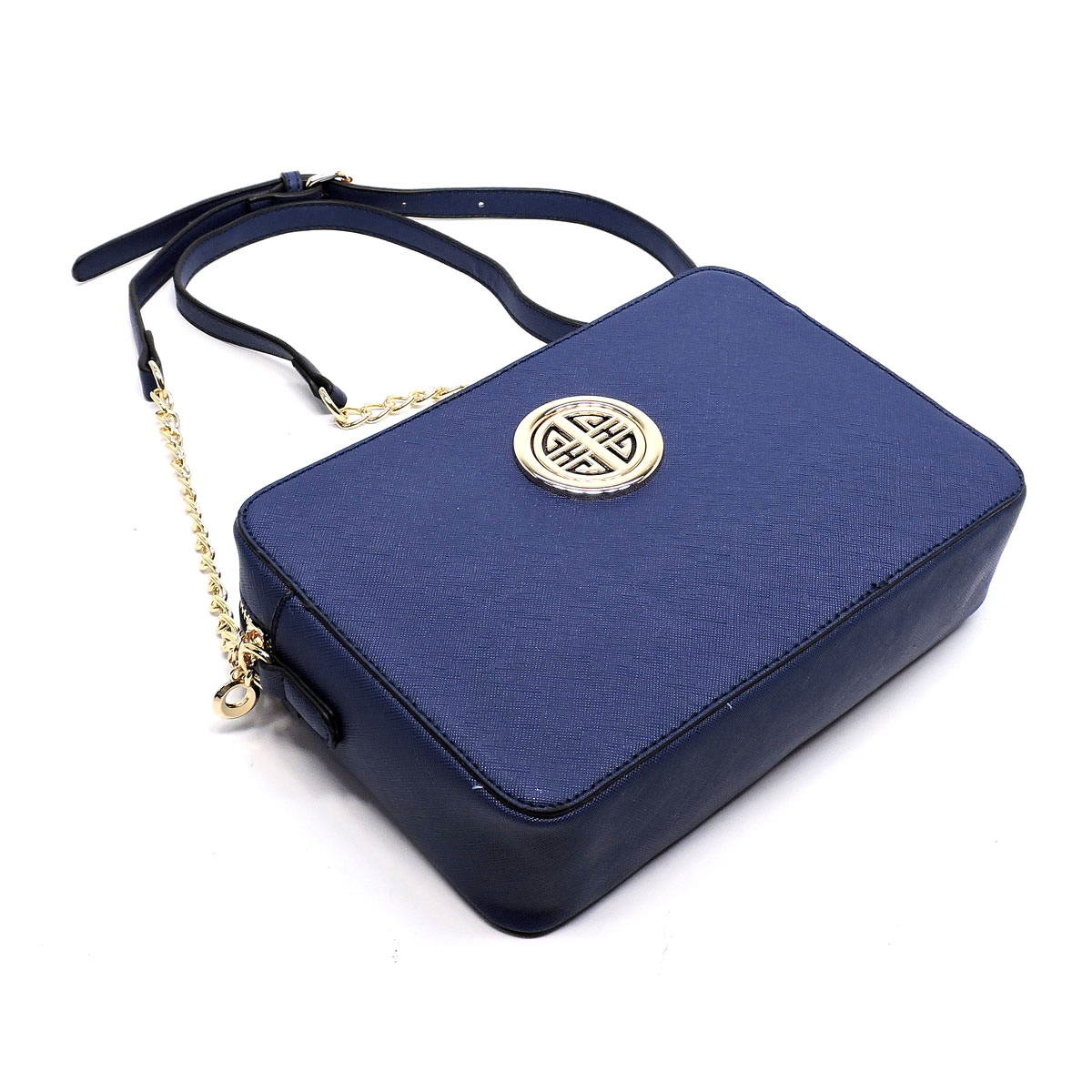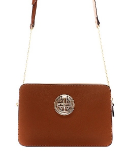 Messenger Handbag Design Faux Leather Classic Style S038 39711 Dark Tan