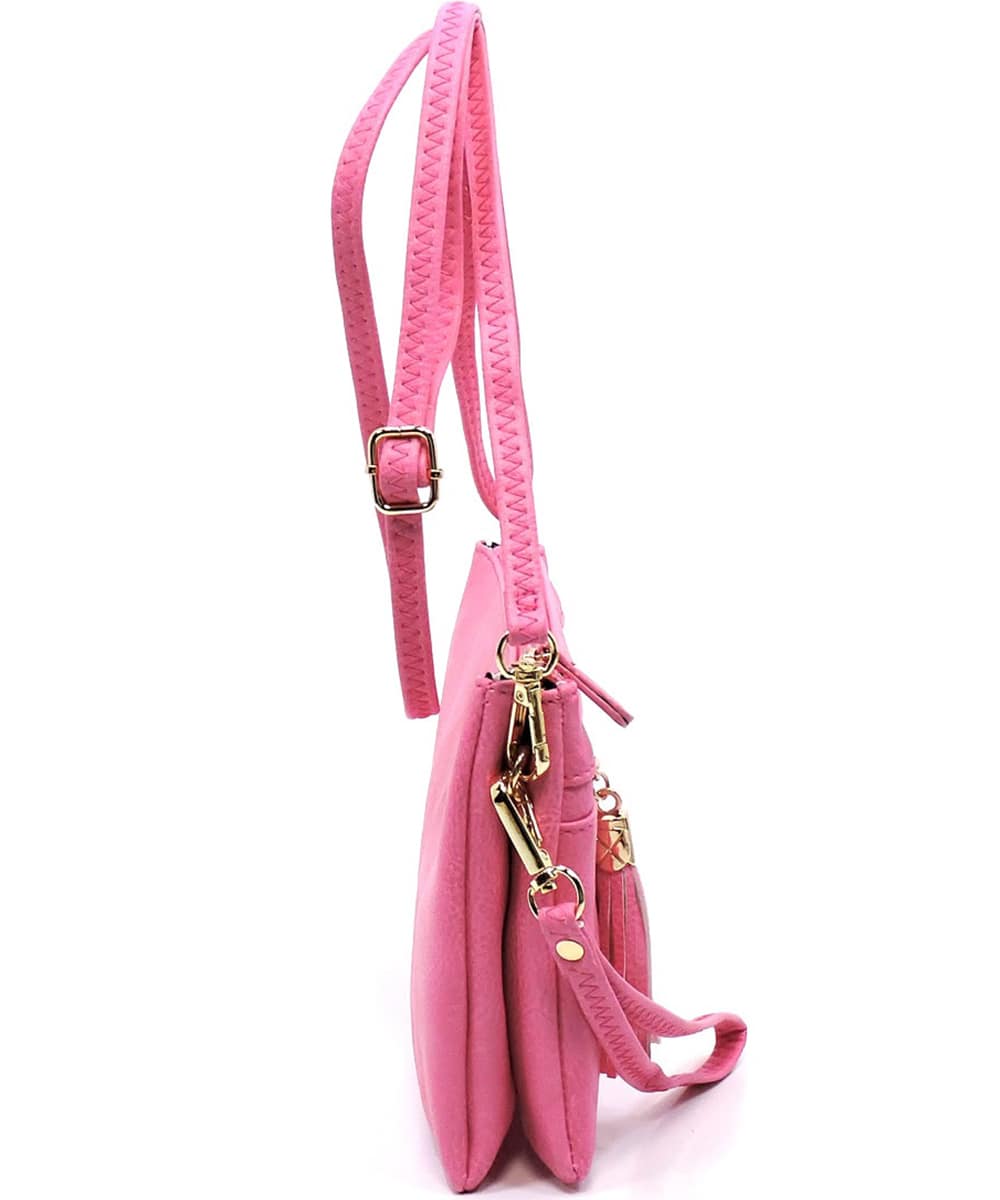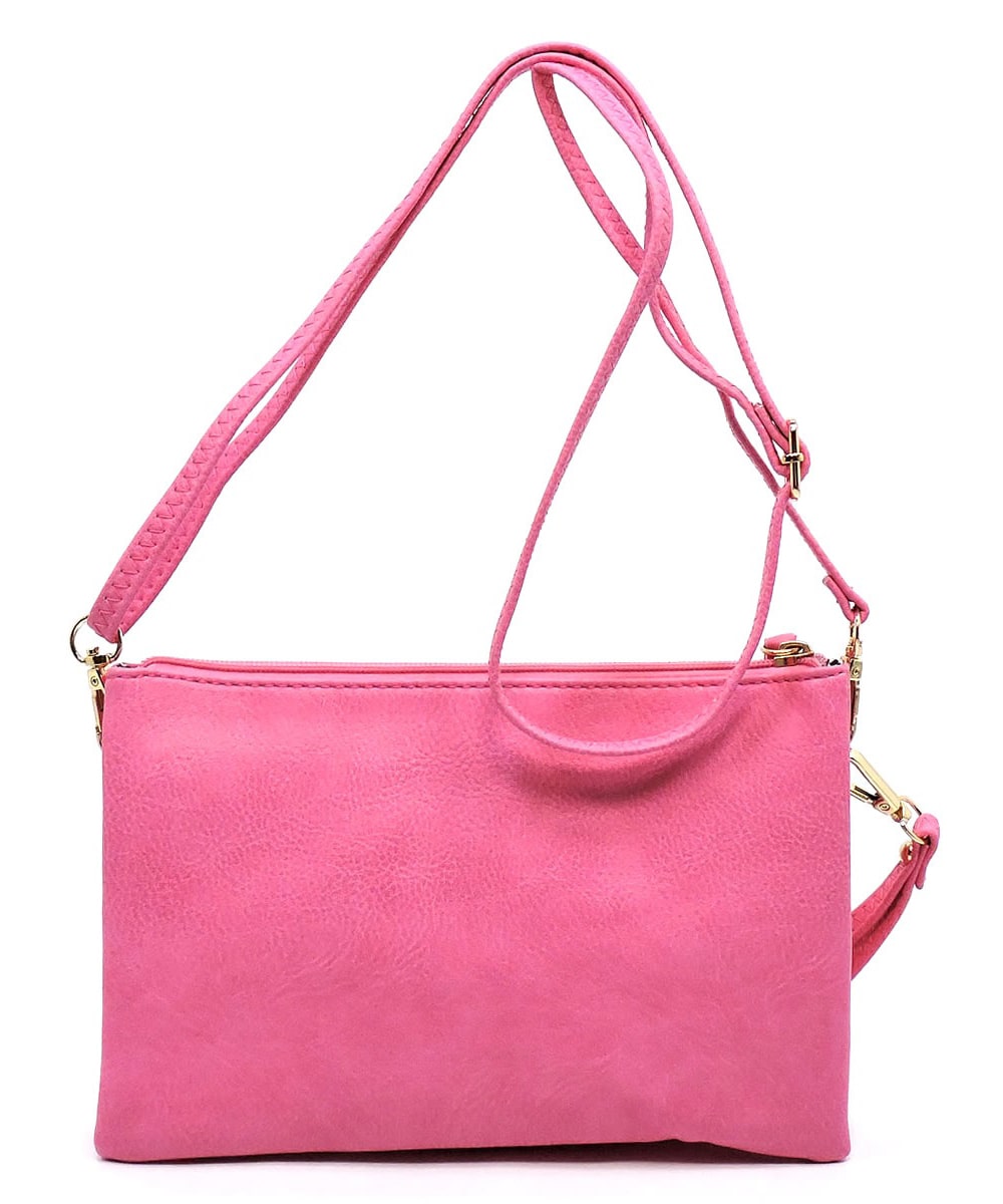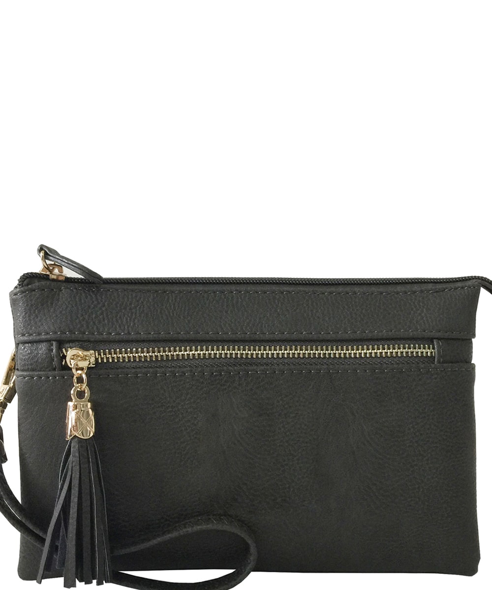 Fashion Double Compartment Clutch Cross Body Bag Faux leather Zip top closure Gold-tone hardware Detachable shoulder strap & wrist band L 9.5 * H 5.5 * W 1
