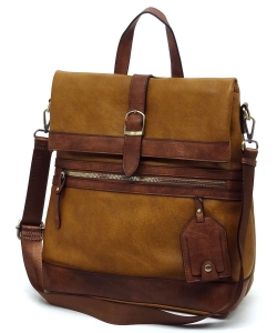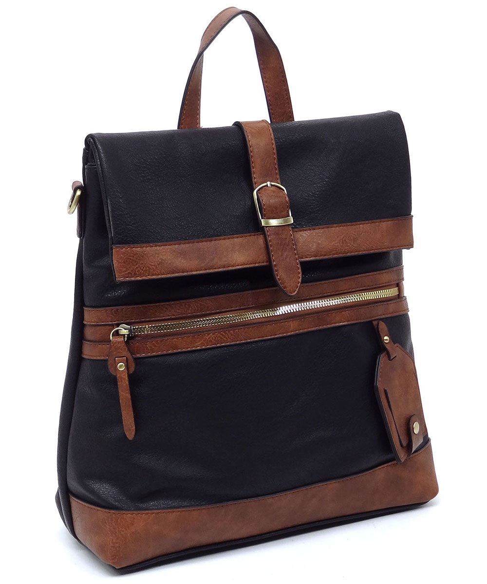 2-Tone Buckle Flap Convertible Backpack CMS044 BLACK