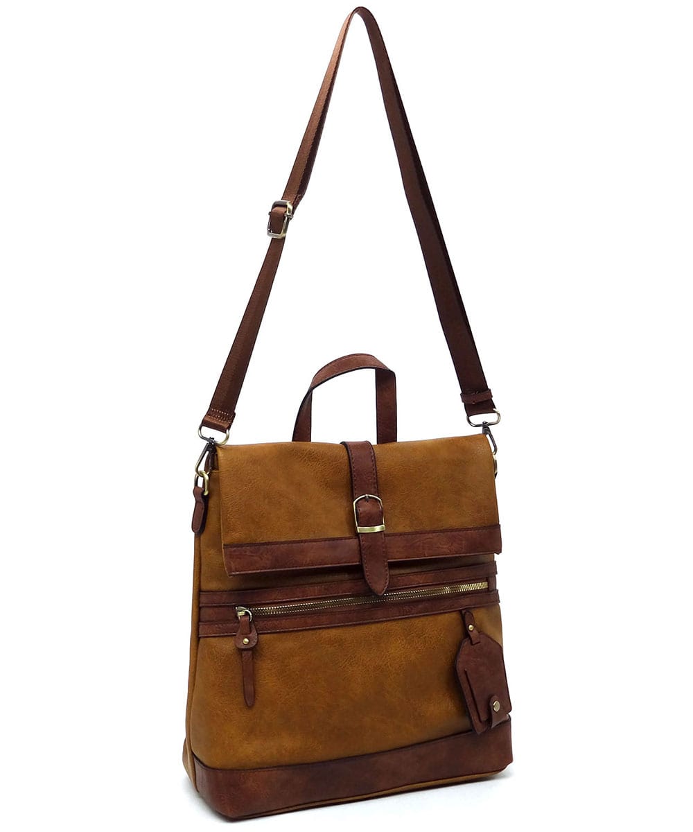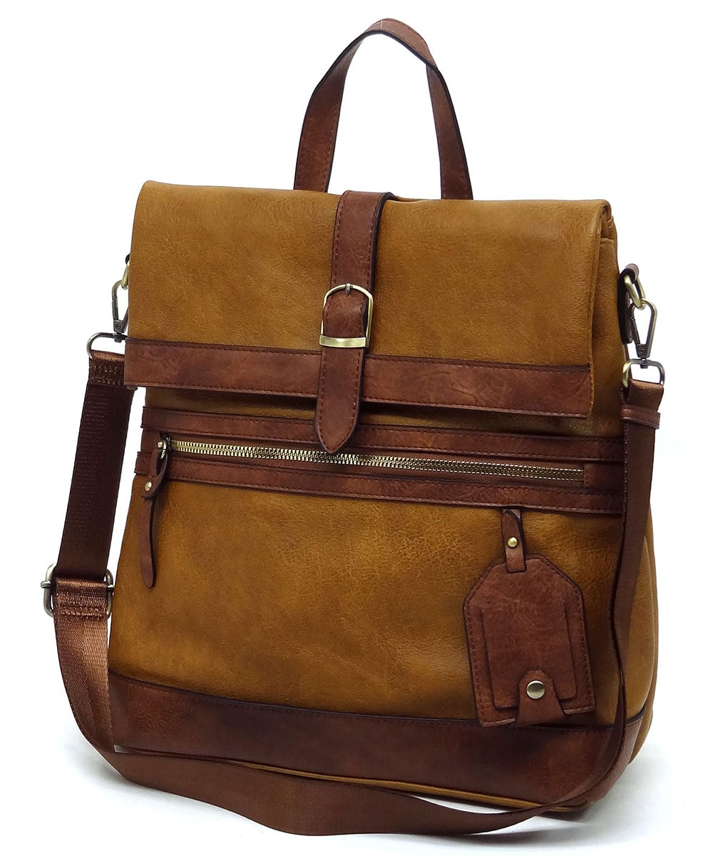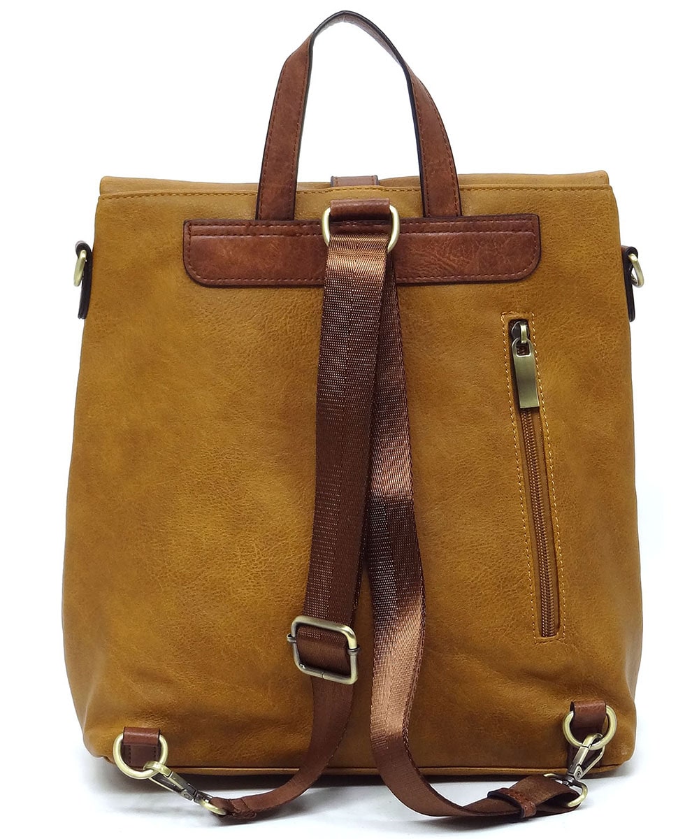 2-Tone Buckle Flap Convertible Backpack Faux vegan leather Zip top closure Gold-tone hardware Detachable shoulder strap L 11.5 * H 12.5 * W 5
