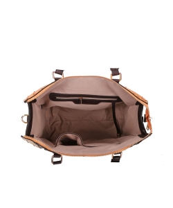 Colorblock Top Handle Satchel AS2770 TAN/TAUPE