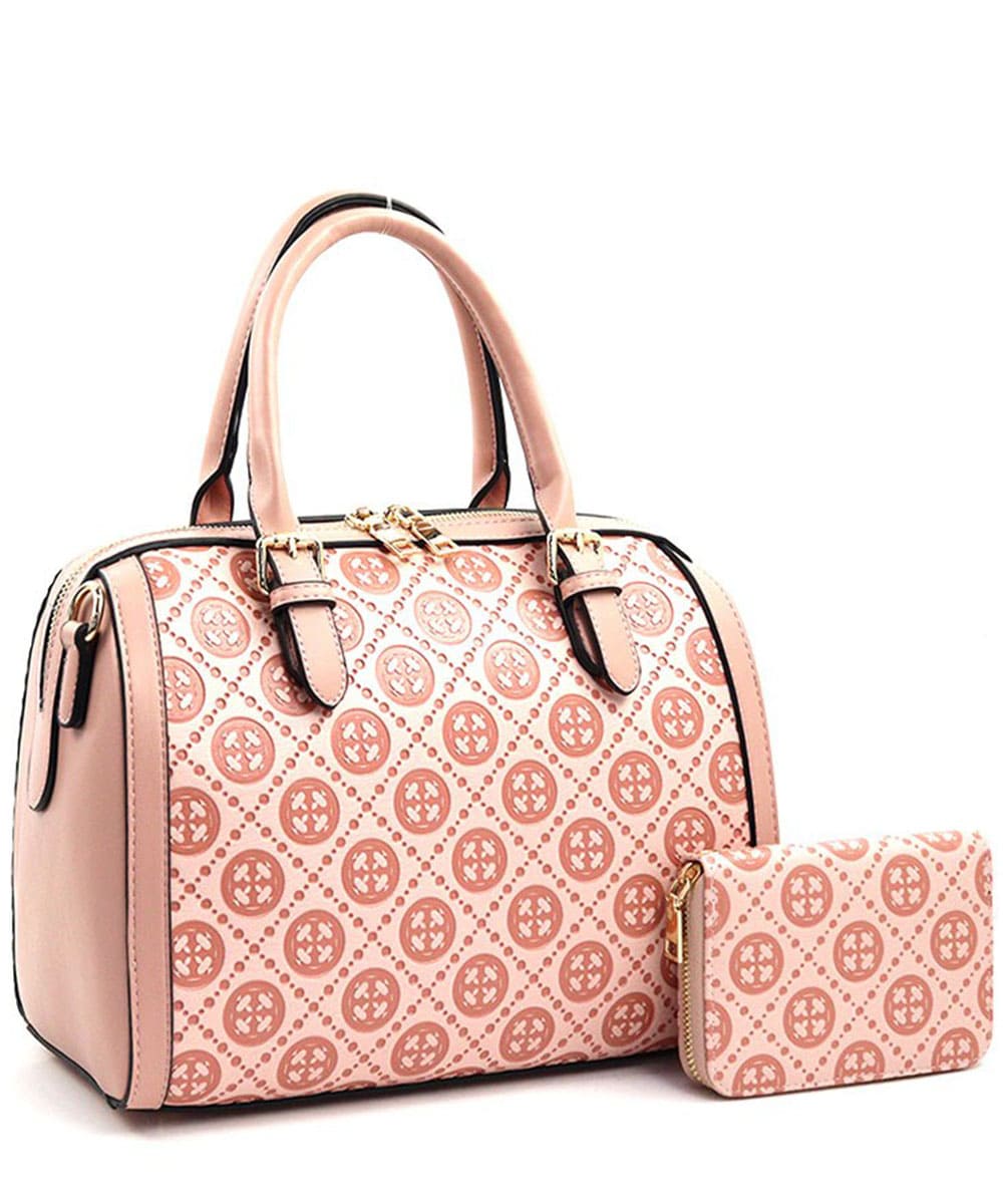 *Fashion Faux Leather Geometric Boston Handbag + Wallet