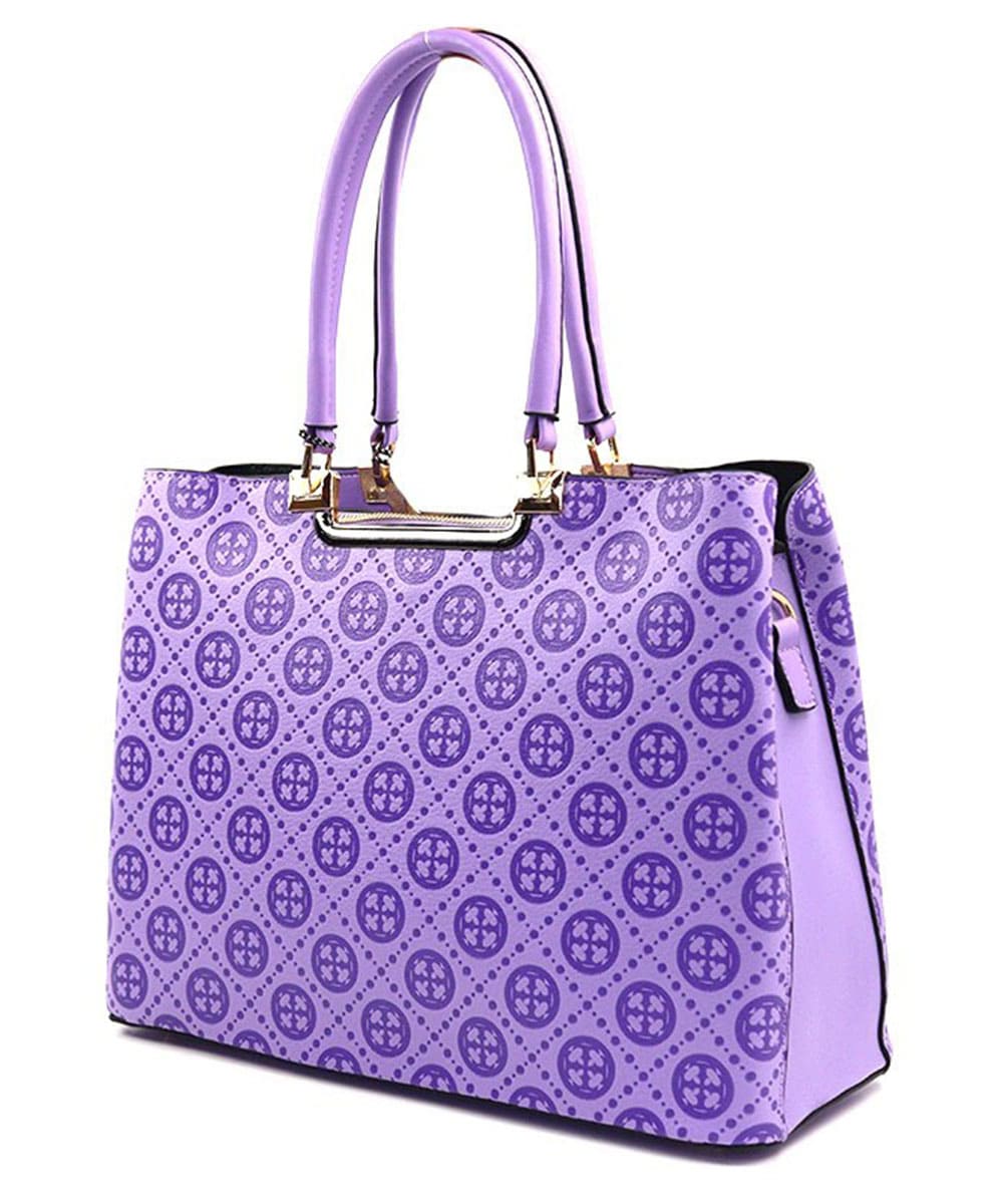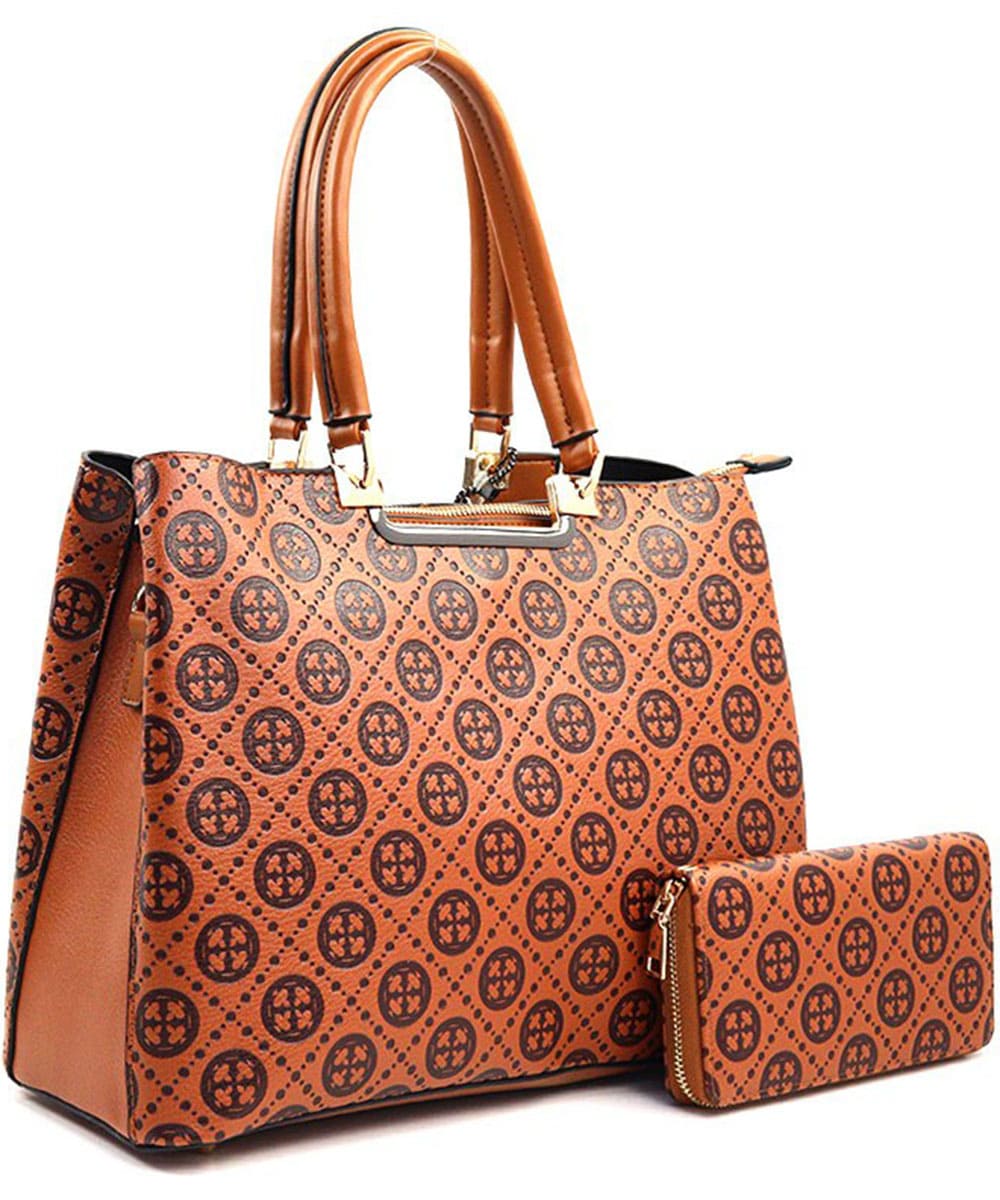 Size: 13.5 "L X 5.5 "D X 10.25 "H Size: 7.25" L X 1" D X 4" H *Fashion Faux Leather Geometric Handbag + Wallet *Two Handles *Top Zip Around Closure *Inside Dual Divider Compartments *Inside Open Pockets *Inside Zipper Pocket *Key Finder Attached *Metal Feet on Bottom *Backside Zipper Pocket *Adjustable Shoulder Strap Included *Zip Around Accordion Wallet *Slots for Cards *Currency/Checkbook Holder *Inside Zip Coin Pocket *Detachable Wristlet Included