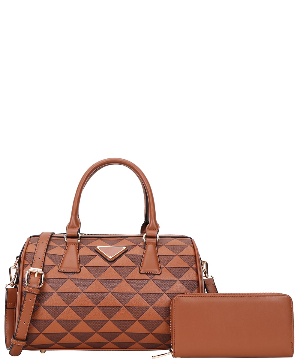 2in1 Monogram Handbag Boston Bag RR-9069W BLACK