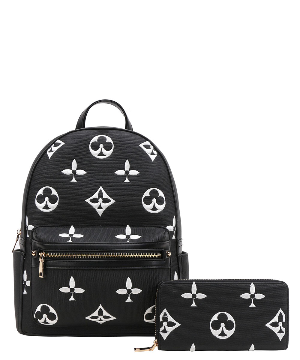 2in1 Pattern Print Design Zipper Backpack Set 3C-8578W BLACK