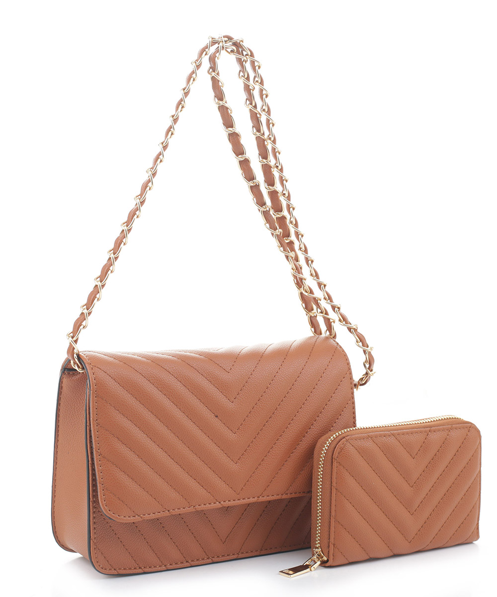 2in1 QUilted V Crossbody Bag Wallet Set CV20142 BROWN