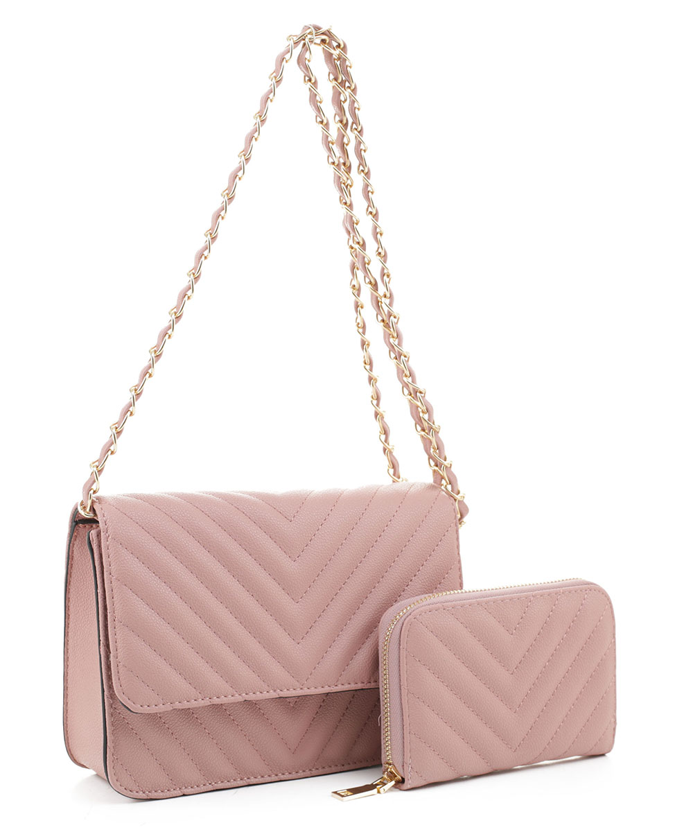 2in1 QUilted V Crossbody Bag Wallet Set CV20142 ROSETAN