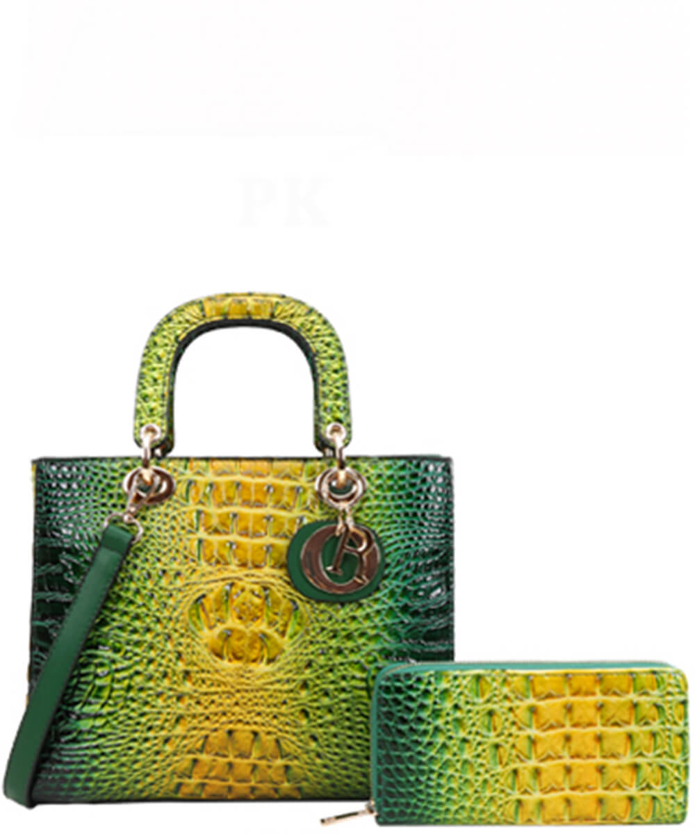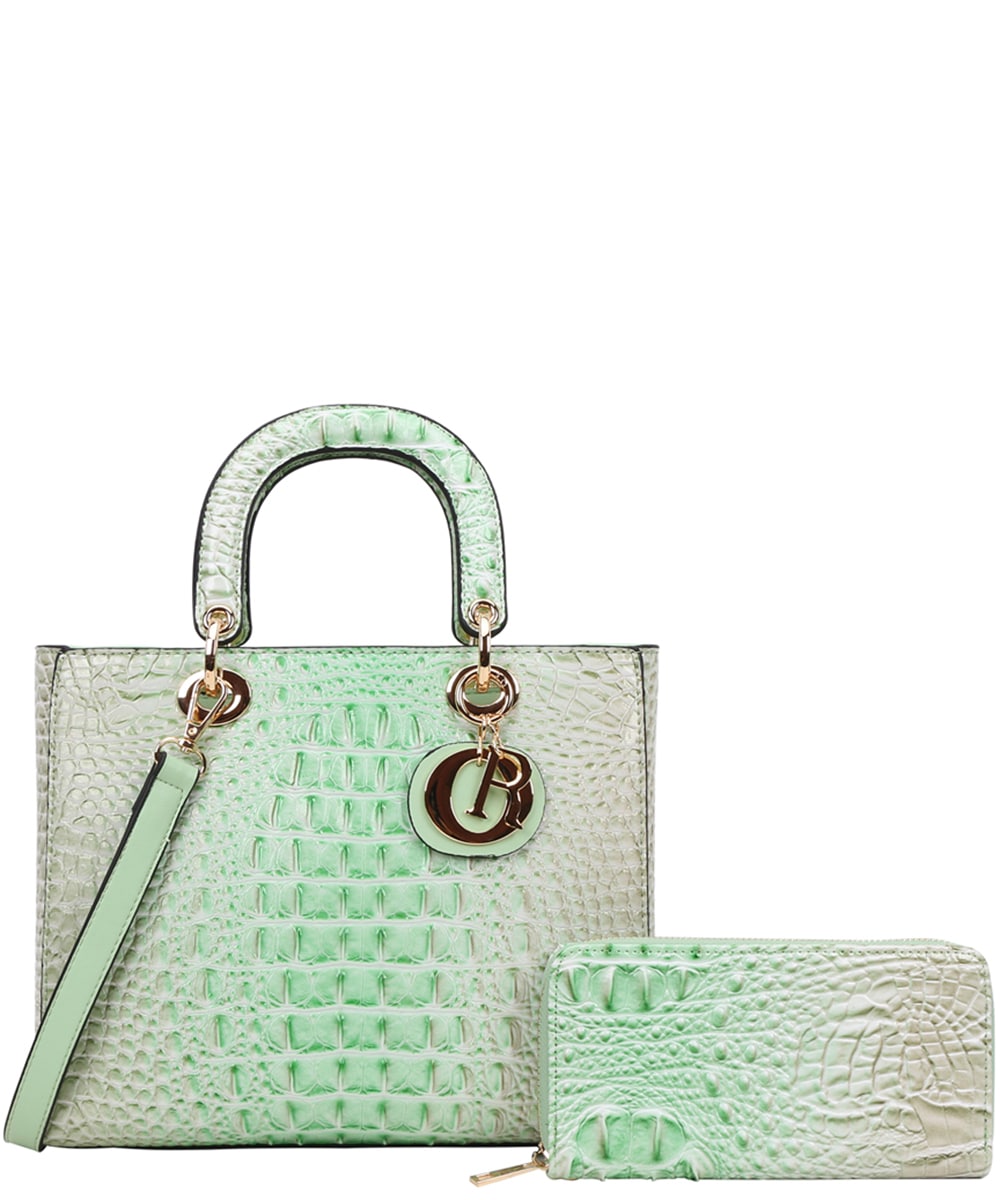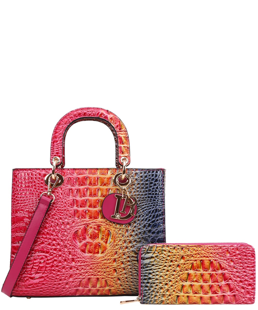 2in1 Tie-Dye Croc Satchel Wallet Set CE9143W ROSE
