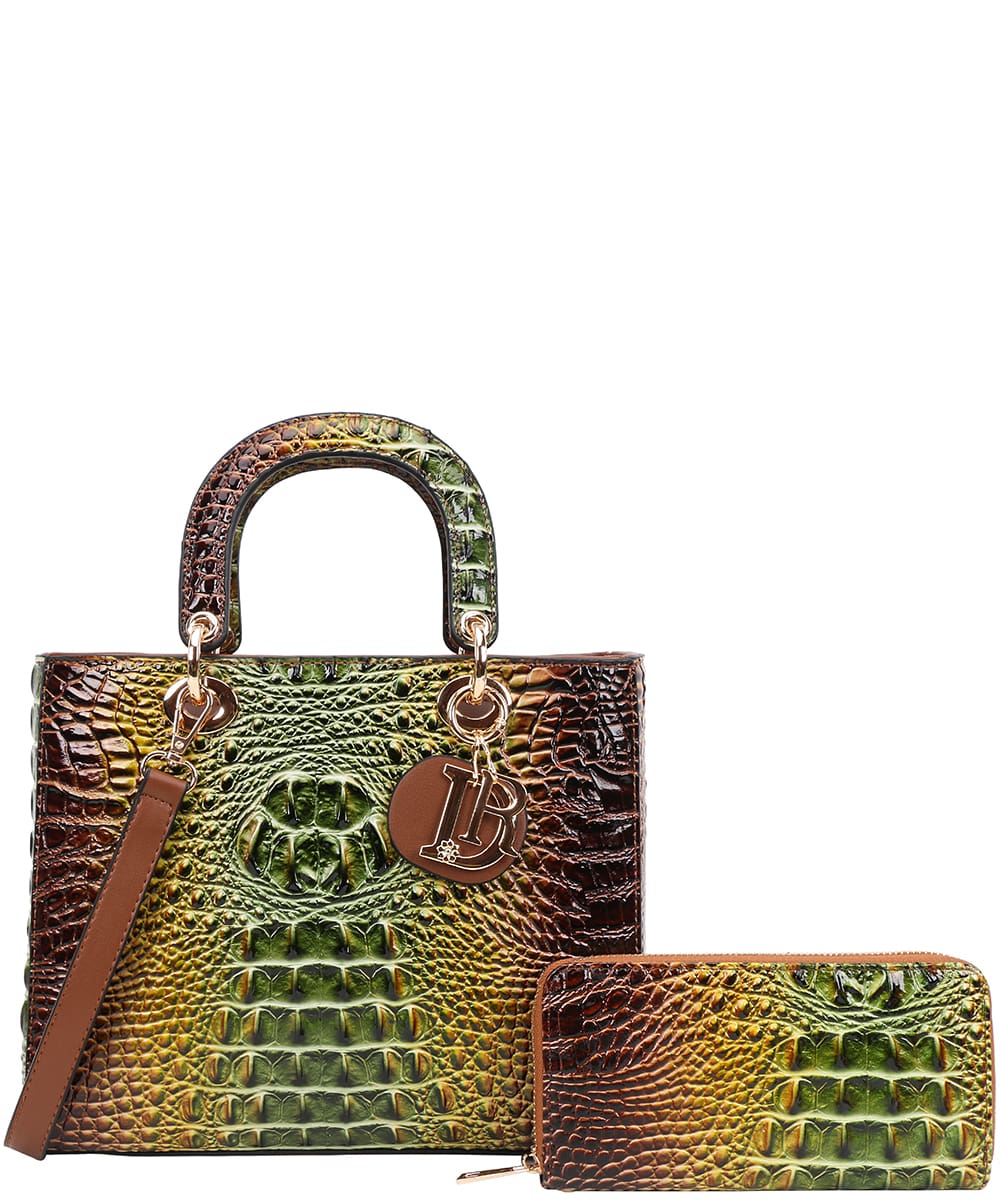 2in1 Tie-Dye Croc Satchel Wallet Set CE9143W BROWN