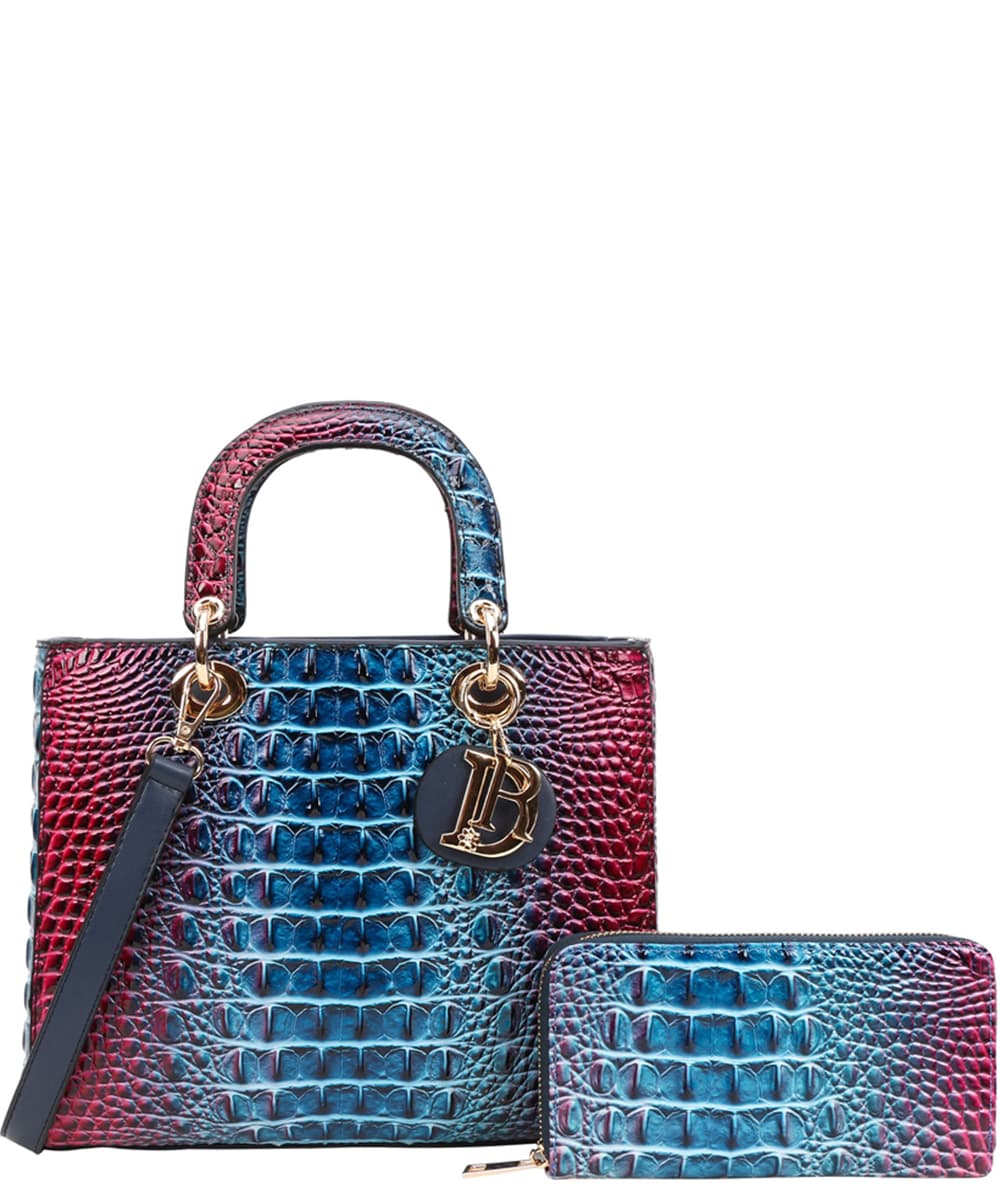 2in1 Tie-Dye Croc Satchel Wallet Set CE9143W ROSE