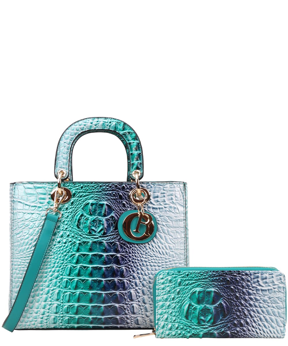 2in1 Tie-Dye Croc Satchel Wallet Set CE9143W BLUE