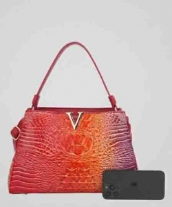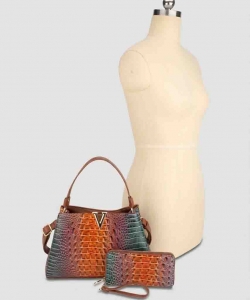 2- In1 Tie-Dye Croc -V- Emblem Satchel - Shoulder Handbag with Wallet