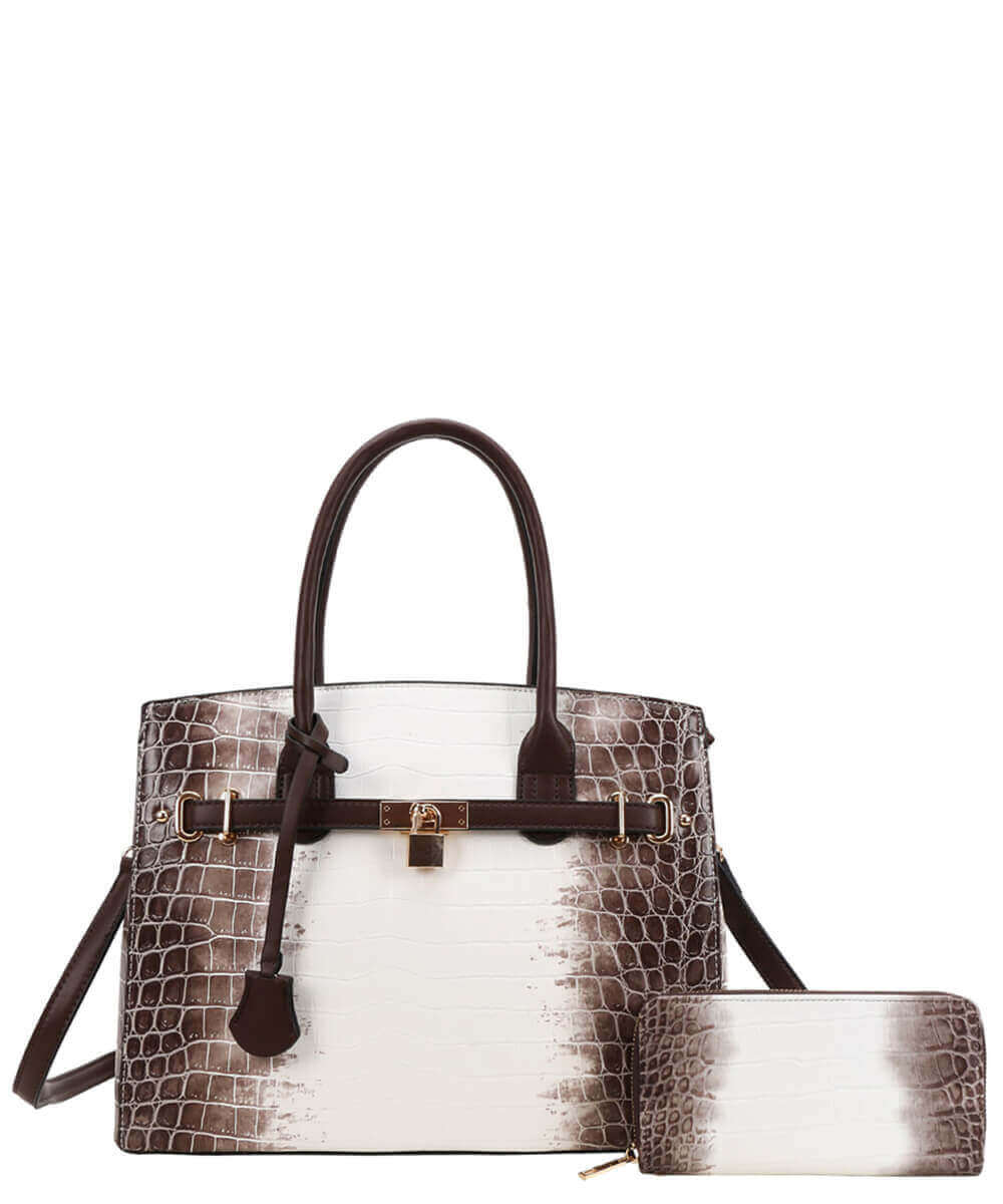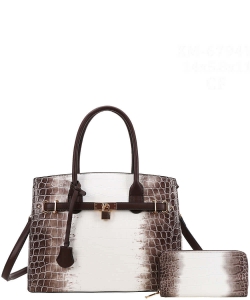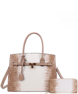 Monogram Twist Lock Flap Satchel PM2771 COFFEE/TAN