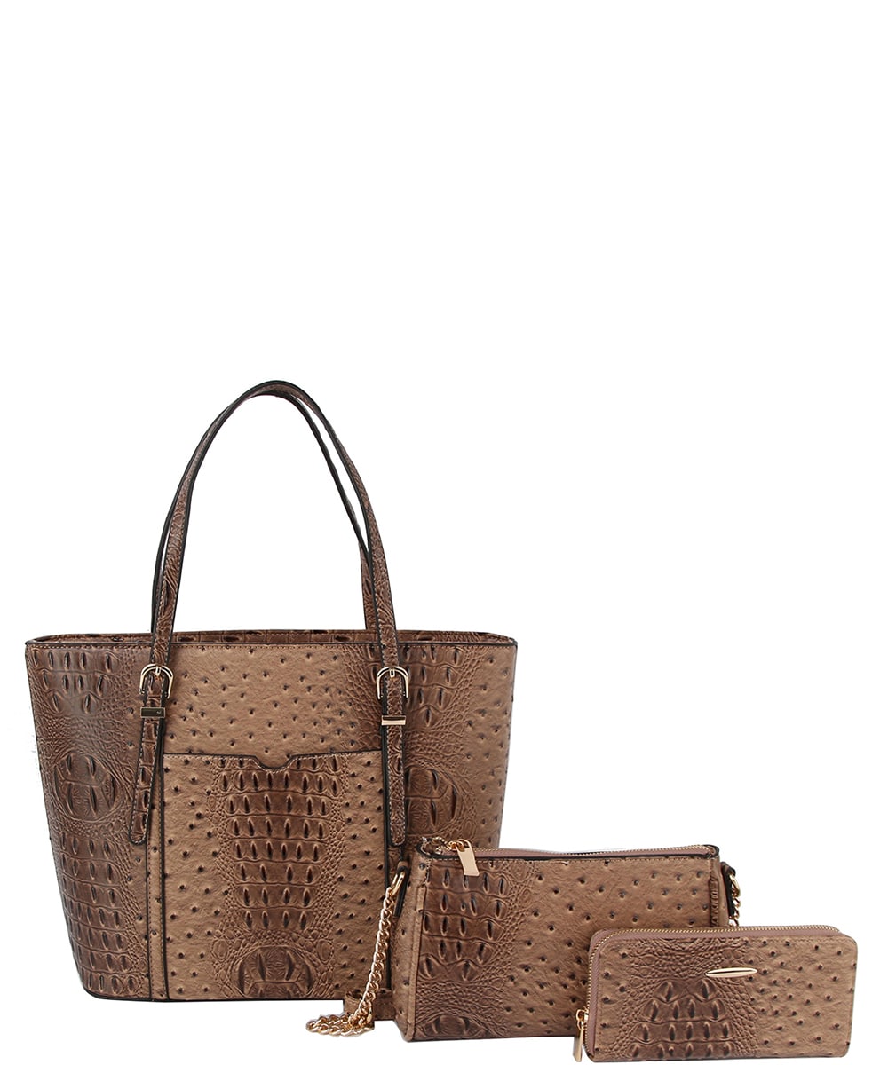 3in1 Crocodile Skin Tote bag Clutch Wallet Set LMD005-Z TAN