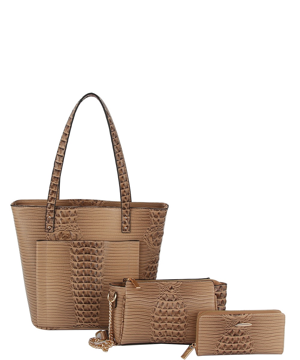 3in1 Crocodile Skin Tote bag Clutch Wallet Set LMD010-Z TAN