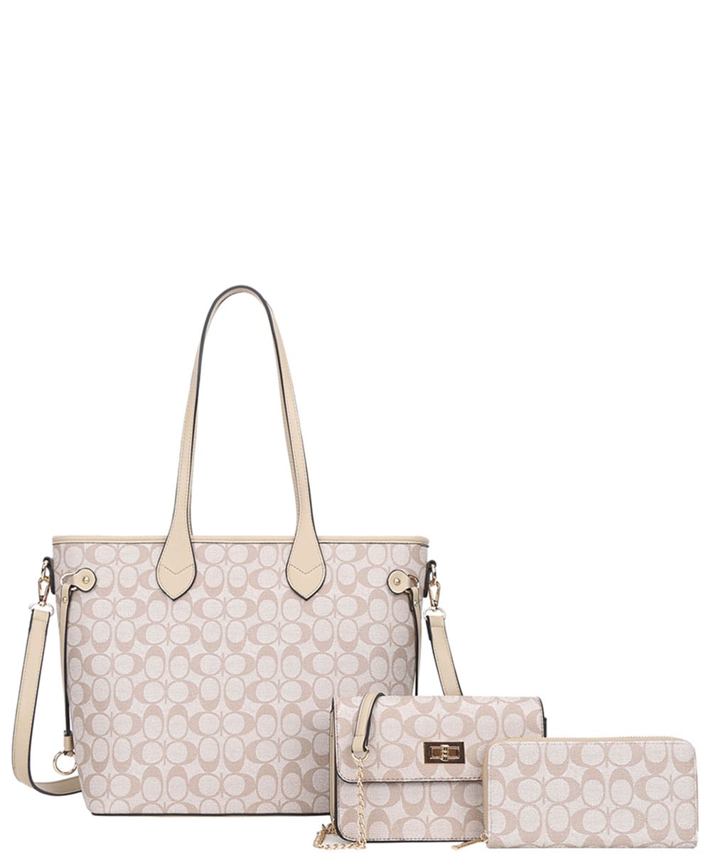 3in1 Oval Monogram Handbag Wallet Set XFT-9176-W