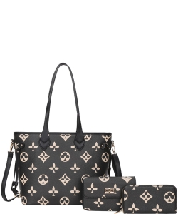 3in1 Print Tote Bag W Crossbody and Wallet Set DH-8091-S BLACK