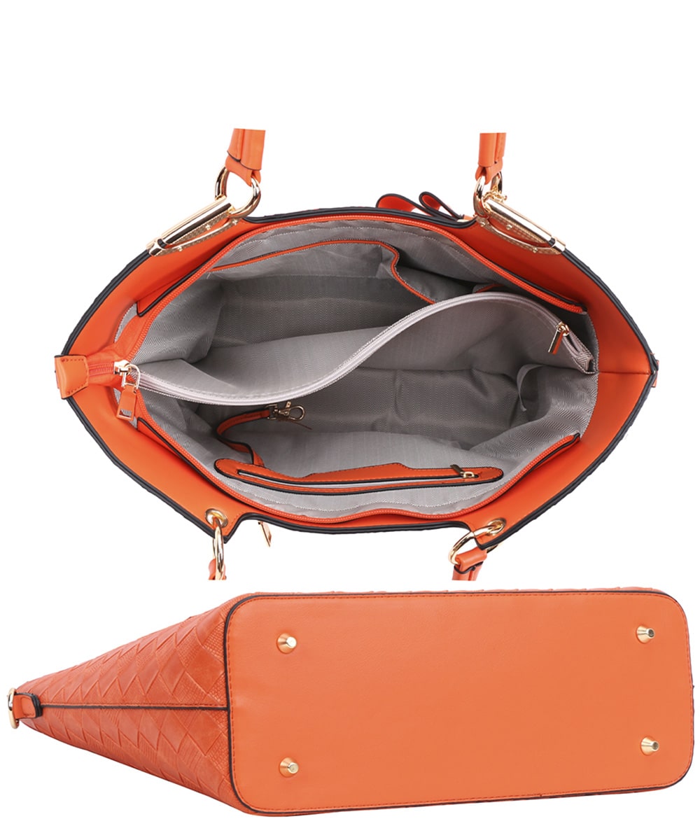 3in1 Quilt Textured Bow Satchel Crossbody and Wallet Set BZ-8093-S COFFEE