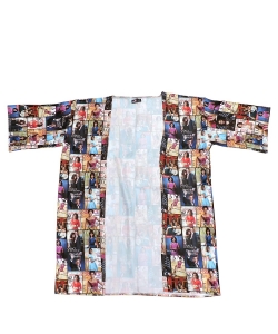 Magazine Cover Collage Kimono Gown OK112W MULTI