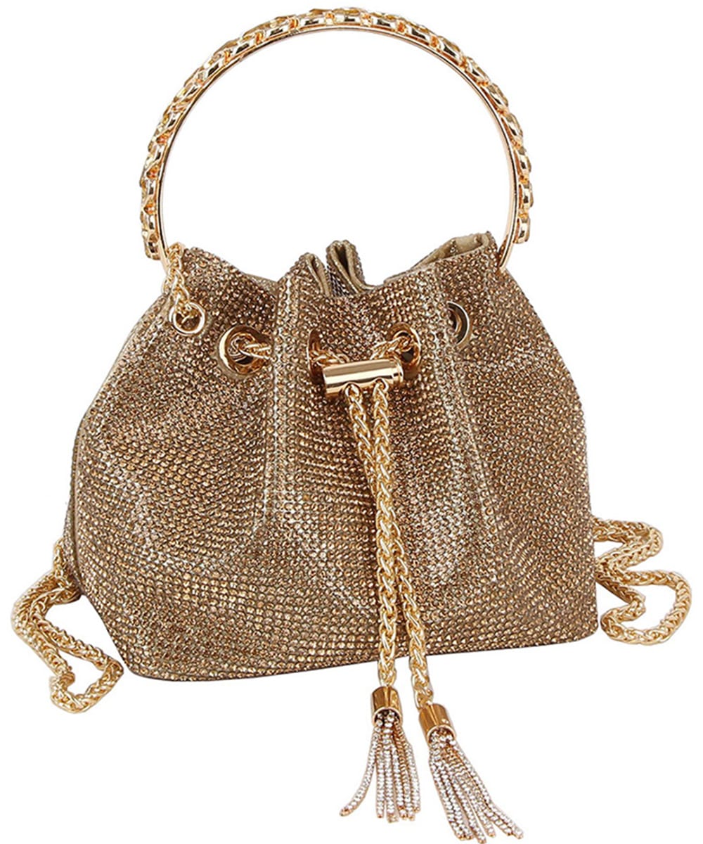 Allover Rhinestone Drawstring Satchel LGZ070 GOLD
