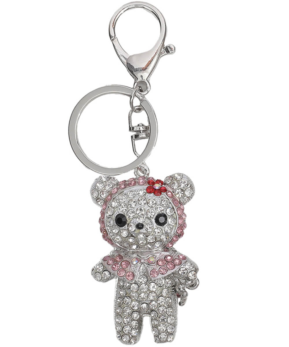 -Bear-shaped keychain with crystal embellishments