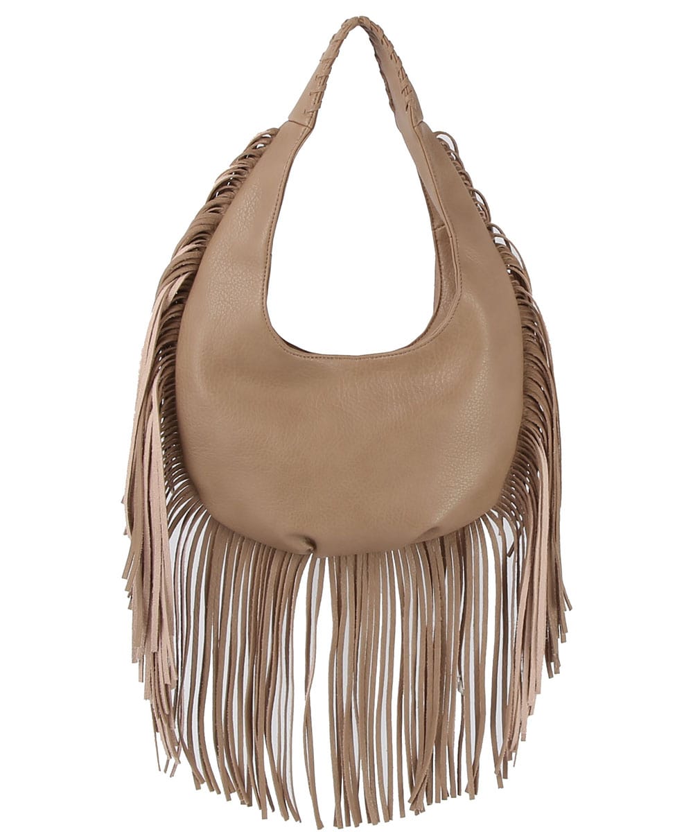 Boho Fringe Hobo Shoulder Bag DX-0191 STONE