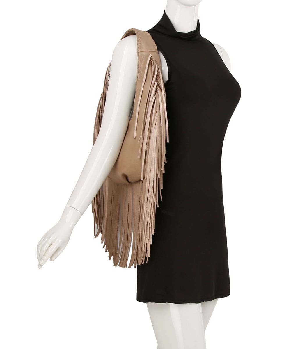 Boho Fringe Hobo Shoulder Bag DX-0191 BEIGE