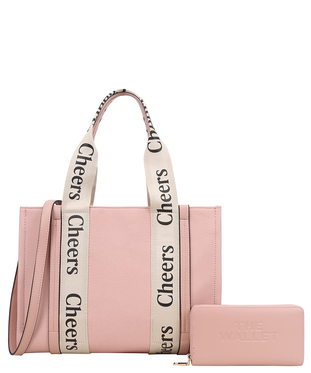 This versatile canvas tote features faux leather accents and a secure zipper closure.