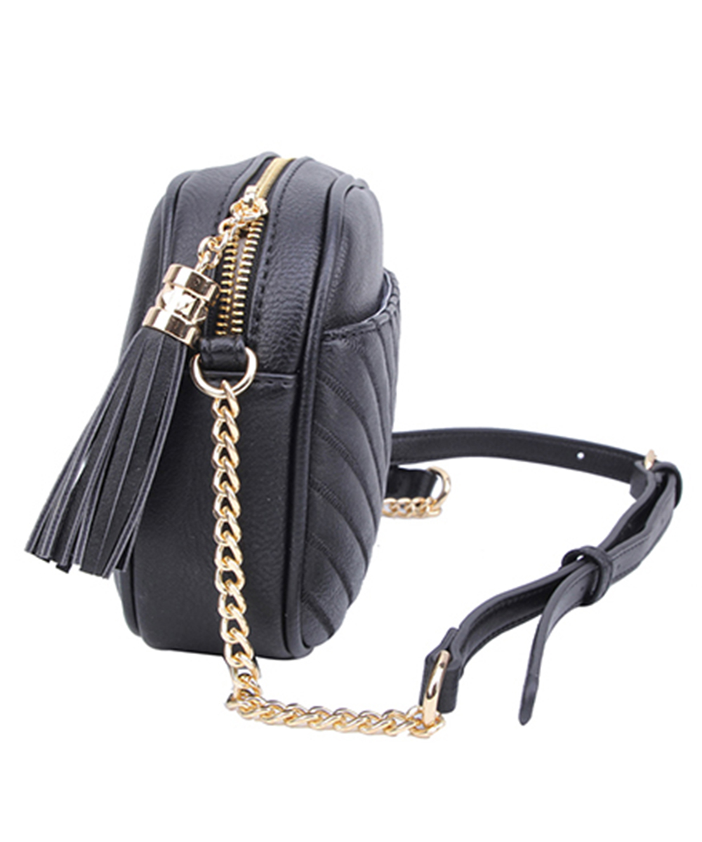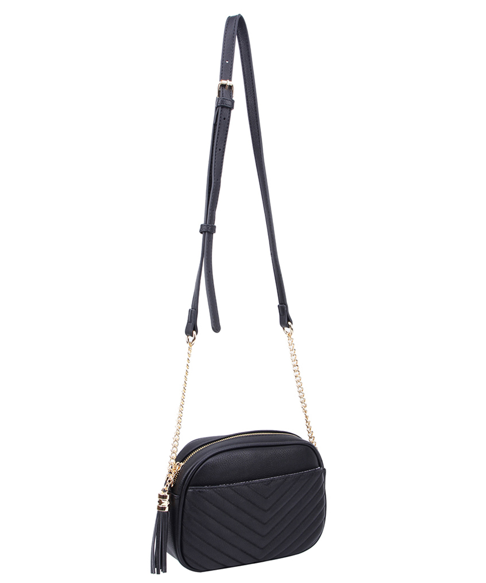 Chevron Quilted Tassel Zip Crossbody Bag WU120 TAN