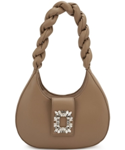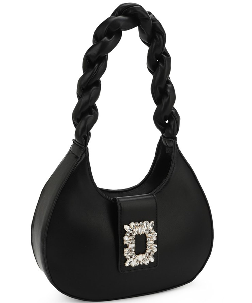 Two Looks in One: Rhinestone-accented flap on one side, quilted rose design on the other.