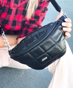 Quilted waist bag made of high quality synthetic leather! It consists of a single compartment that closes with a zipper and contains a zippered pocket. On the outside back of the design, there is also a pocket that closes with a zipper. It has an adjustable detachable strap! Dimensions: H 18 x L 35 cm.