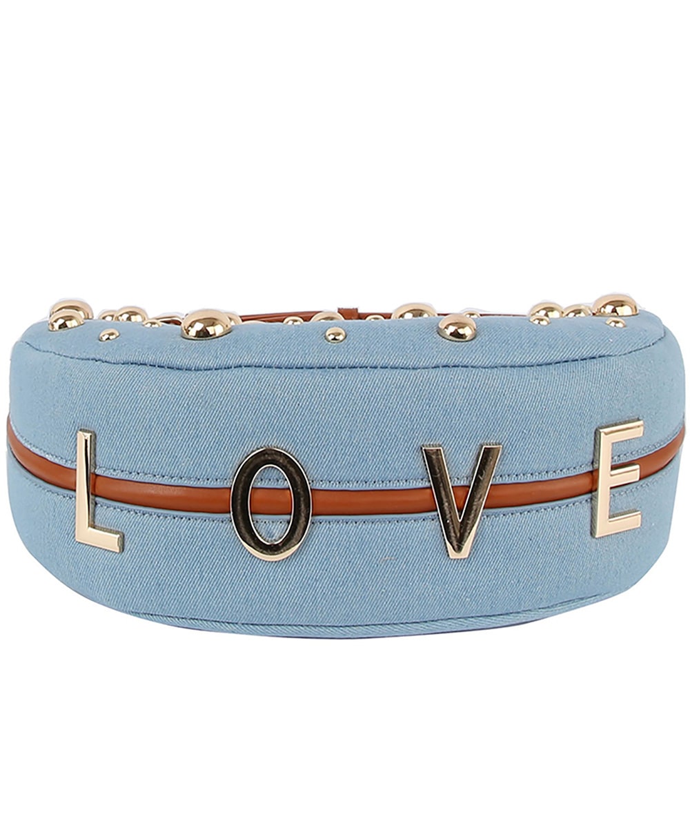 Denim LOVE Studded Shoulder Bag Hobo LY132 DENIM