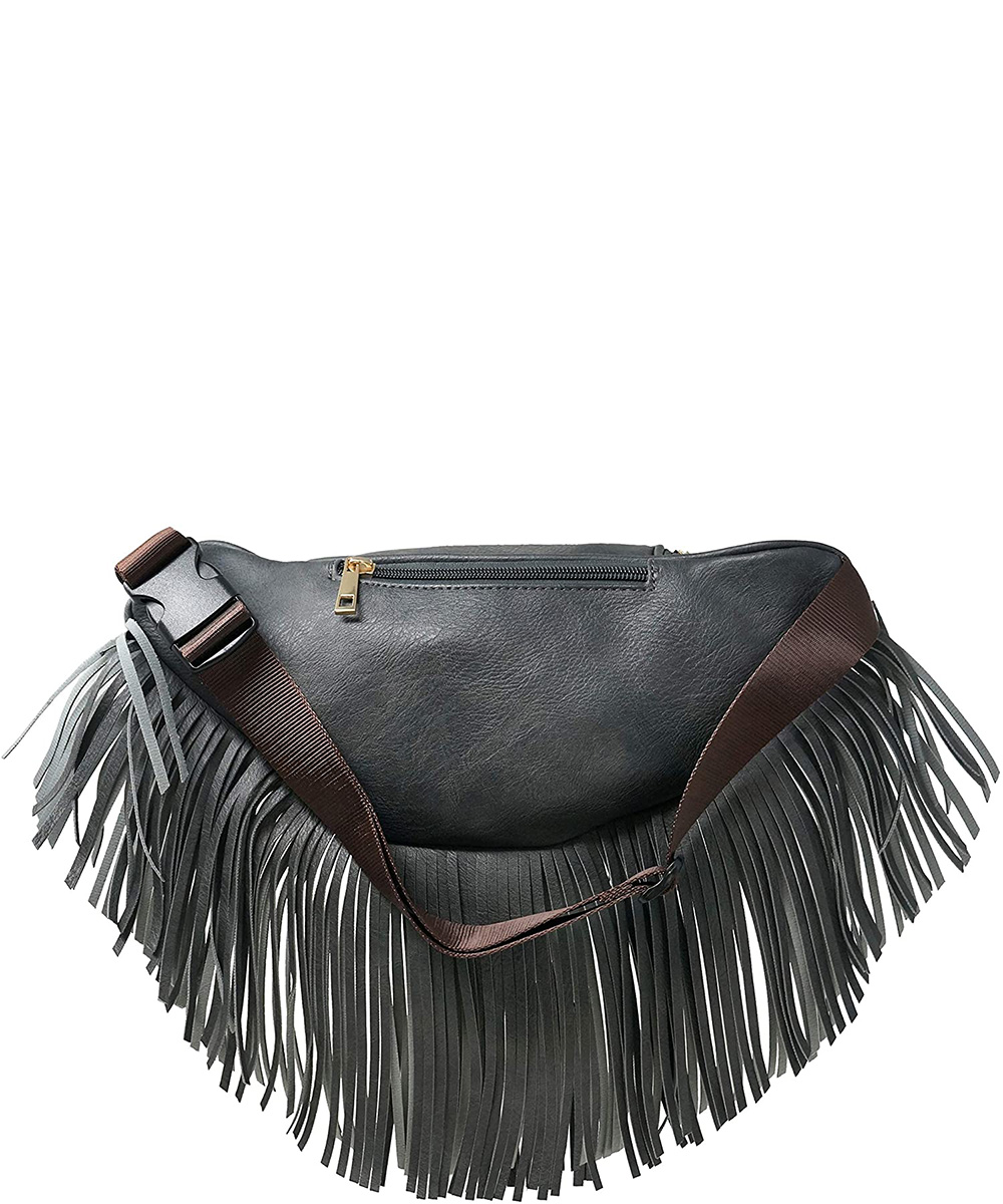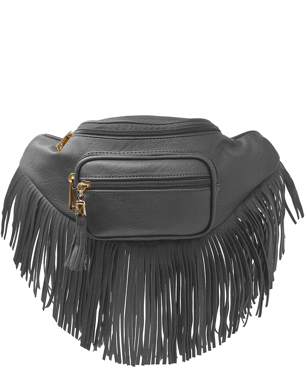 Designer Chic Fringe Waist Bag KL088 CHARCOAL GRAY