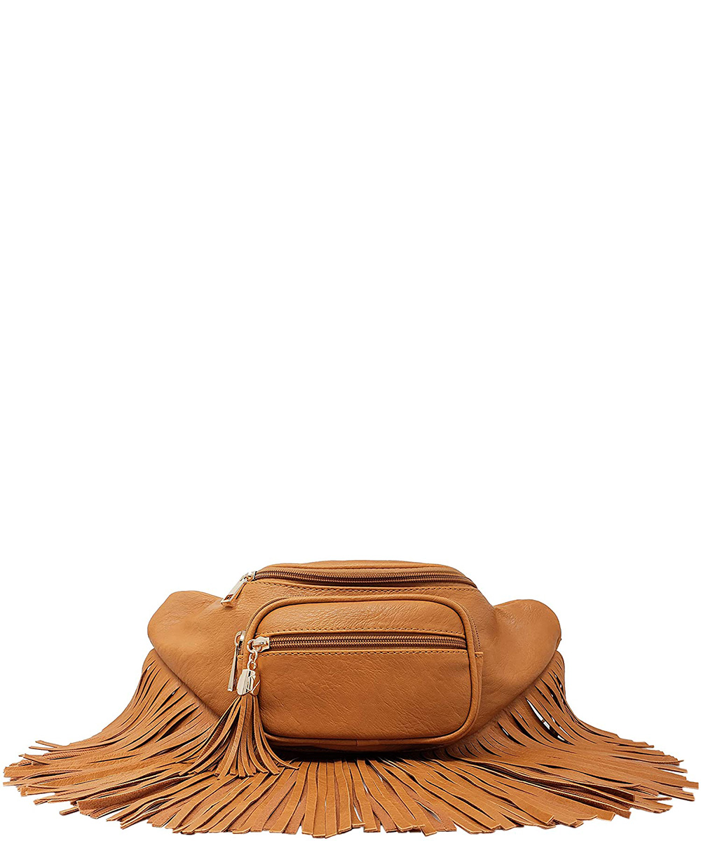 Designer Chic Fringe Waist Bag KL088 BURNT ORANGE