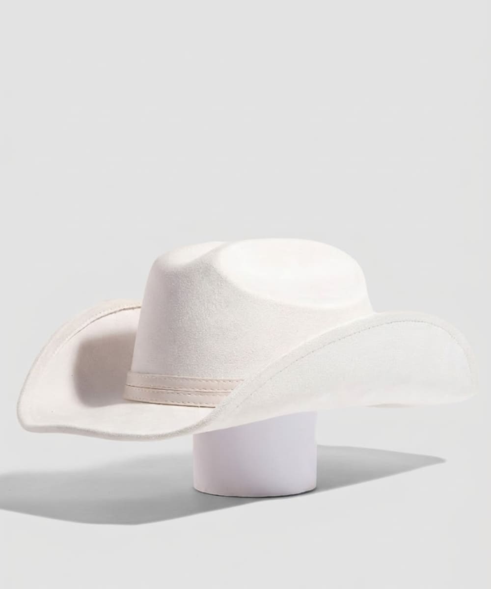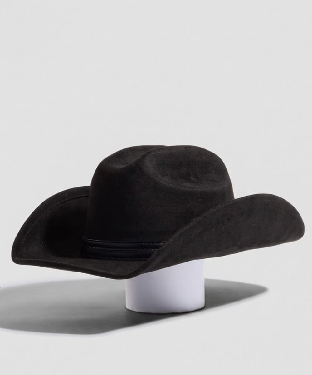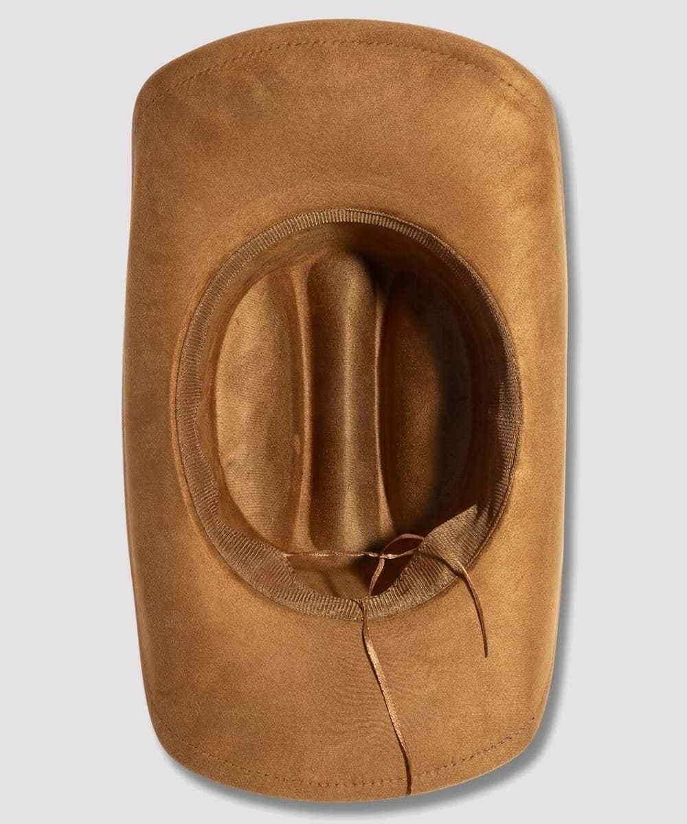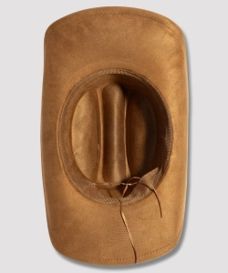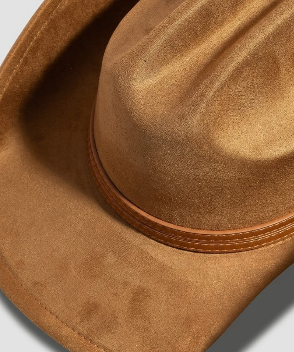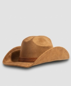 Elevate any look, this fedora hat reveals an intricate double belt faux suede cowboy hat design. This fedora hat is a great way to add some glamour and sophistication to your outfit. Available in BK, BR, IV, TP. This item is sold in packs of 1.