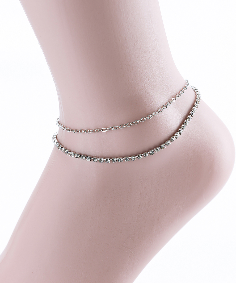 Double Layer Rhinestone Chain Anklet AN320034 GOLD