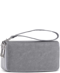 Double Zip Around Wristlet Wallet WU0012 FUSHIA