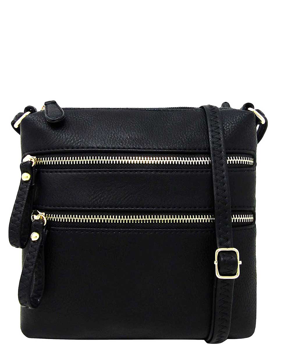 Double Zip Fashion Crossbody Bag WU085 BLACK