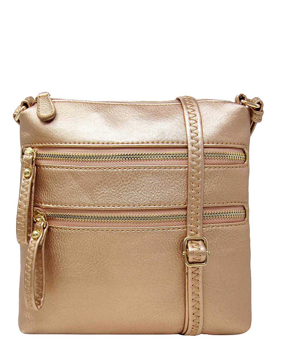Double Zip Fashion Crossbody Bag WU085 ROSEGOLD