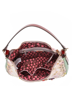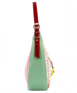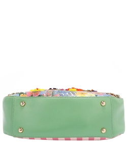Front is embellished with resin flowers, sequins, beads, and appliques