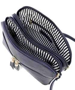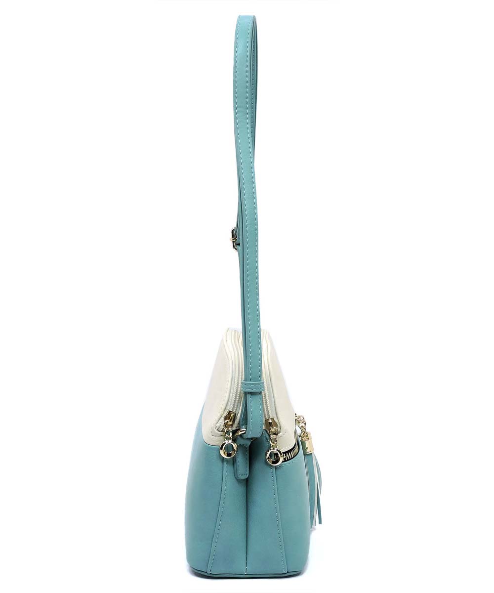 Dual Tone Zip Tassel Multi Compartment Crossbody Bag LP050 WHITE/WATERMELON