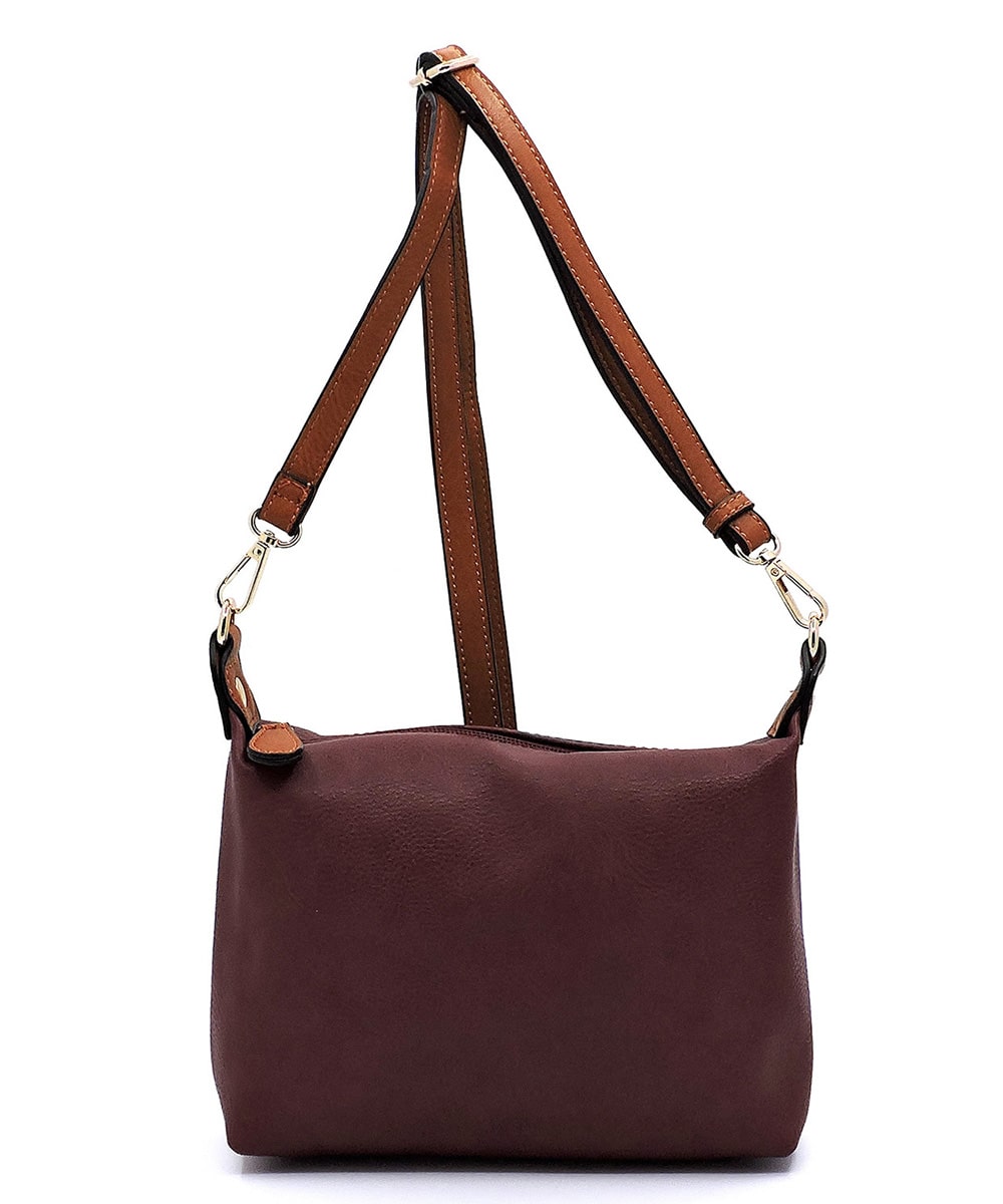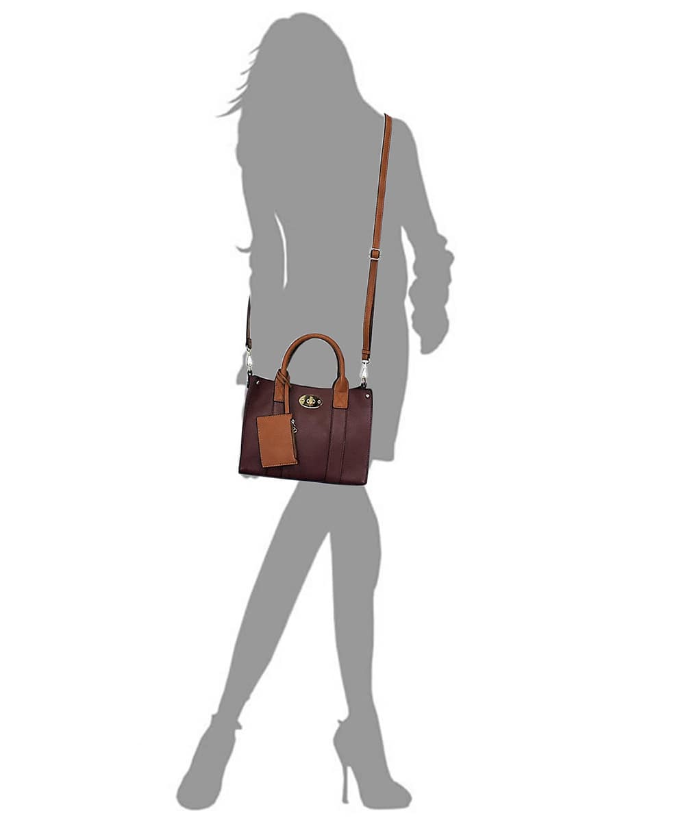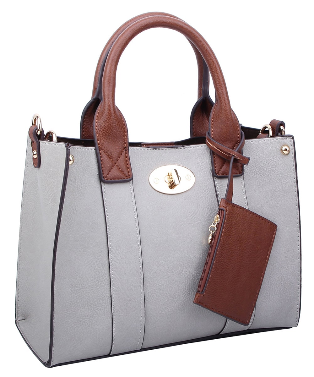 Fashion 3-in-1 Boxy Satchel Faux leather Zip top closure Gold-tone hardware Detachable shoulder strap 3-in-1 Bag (Satchel, Crossbody & Coin purse) L 10.5 * H 8 * W 4 (4 D)