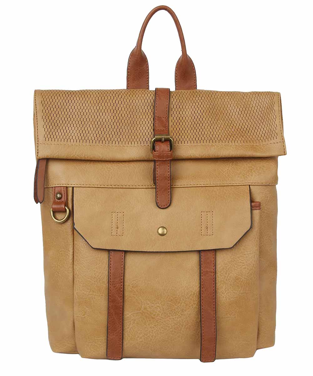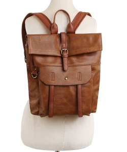 Fashion Buckle Flap Backpack CJF080 COGNAC