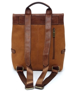 Fashion Colorblock Flap Backpack CMS048 BROWN