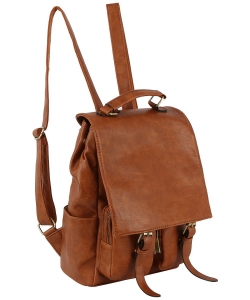 Fashion Faux Buckle Flap Backpack GLM-0116 BROWN