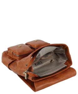 Fashion Faux Buckle Flap Backpack GLM-0116 TAN