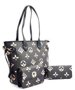 *Fashion Faux Leather 3 in 1 Handbag Set *Double Carry Handles *Zipper Top Closure *Inside Zipper and Open Pockets *Backside Zipper Pocket *Metal Feet on Bottom *Adjustable Shoulder Strap Included *Turn Clasp Messenger Bag *Inside Zipper and Open Pocket *Backside Zipper Pocket *Gold Shoulder Chain Included *Zip Around Accordian Style Wallet Included *Zipper Divider Pocket *Currency/Checkbook Holder *Multiple Slots for Cards *Detachable Wristlet Included