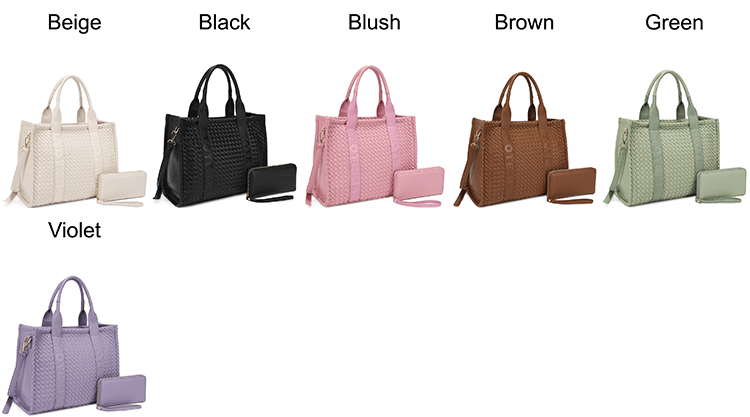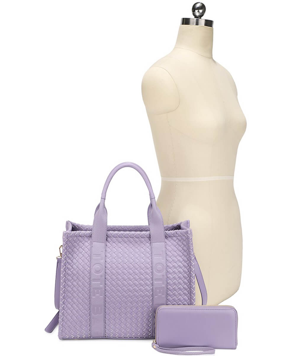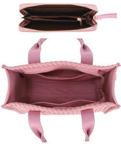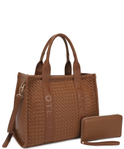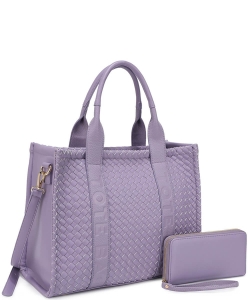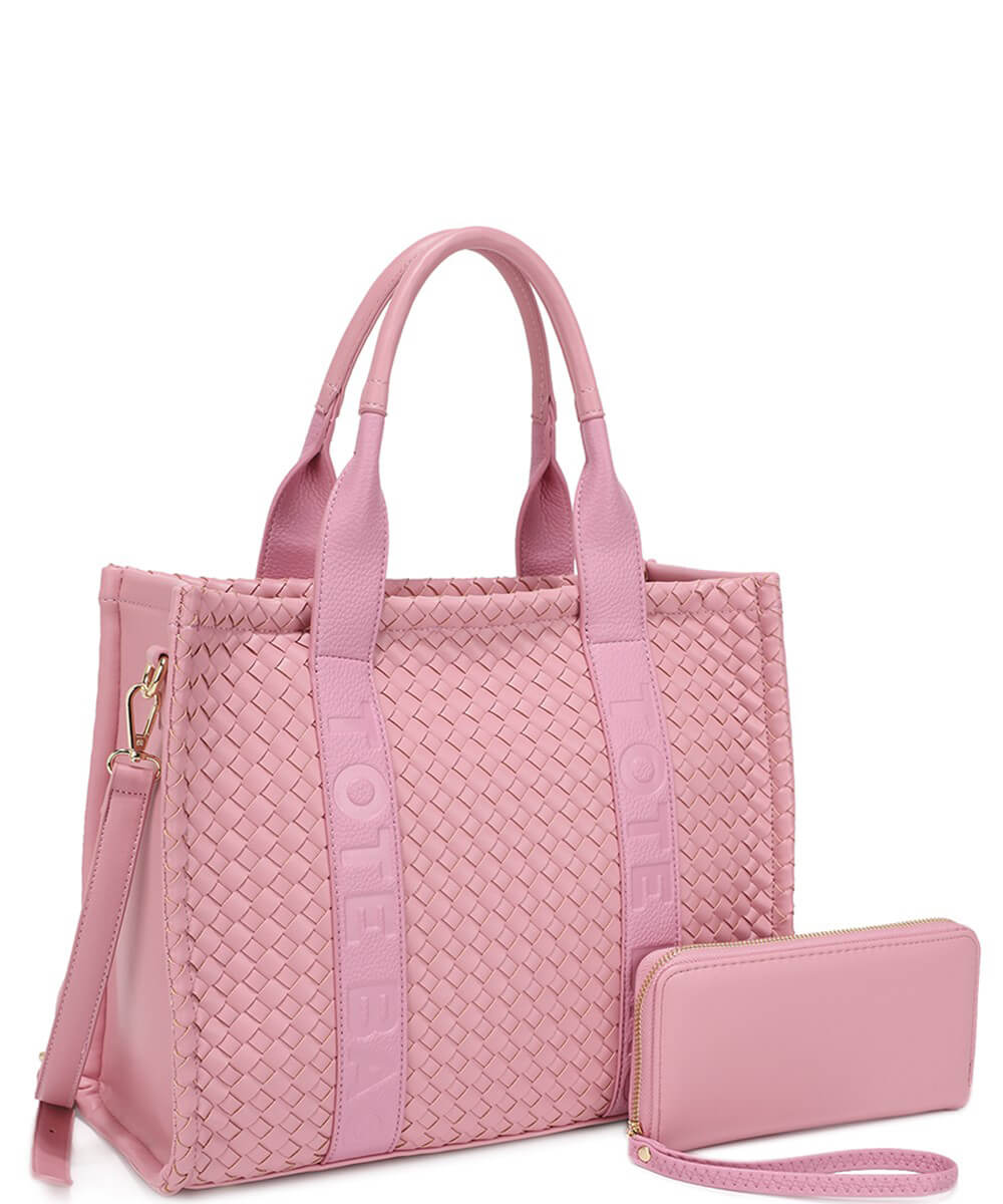 Fashion Faux Leather Woven Tote Bag + Wallet Set