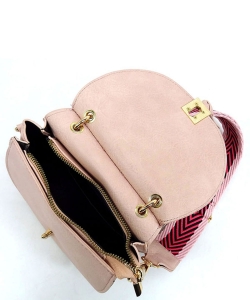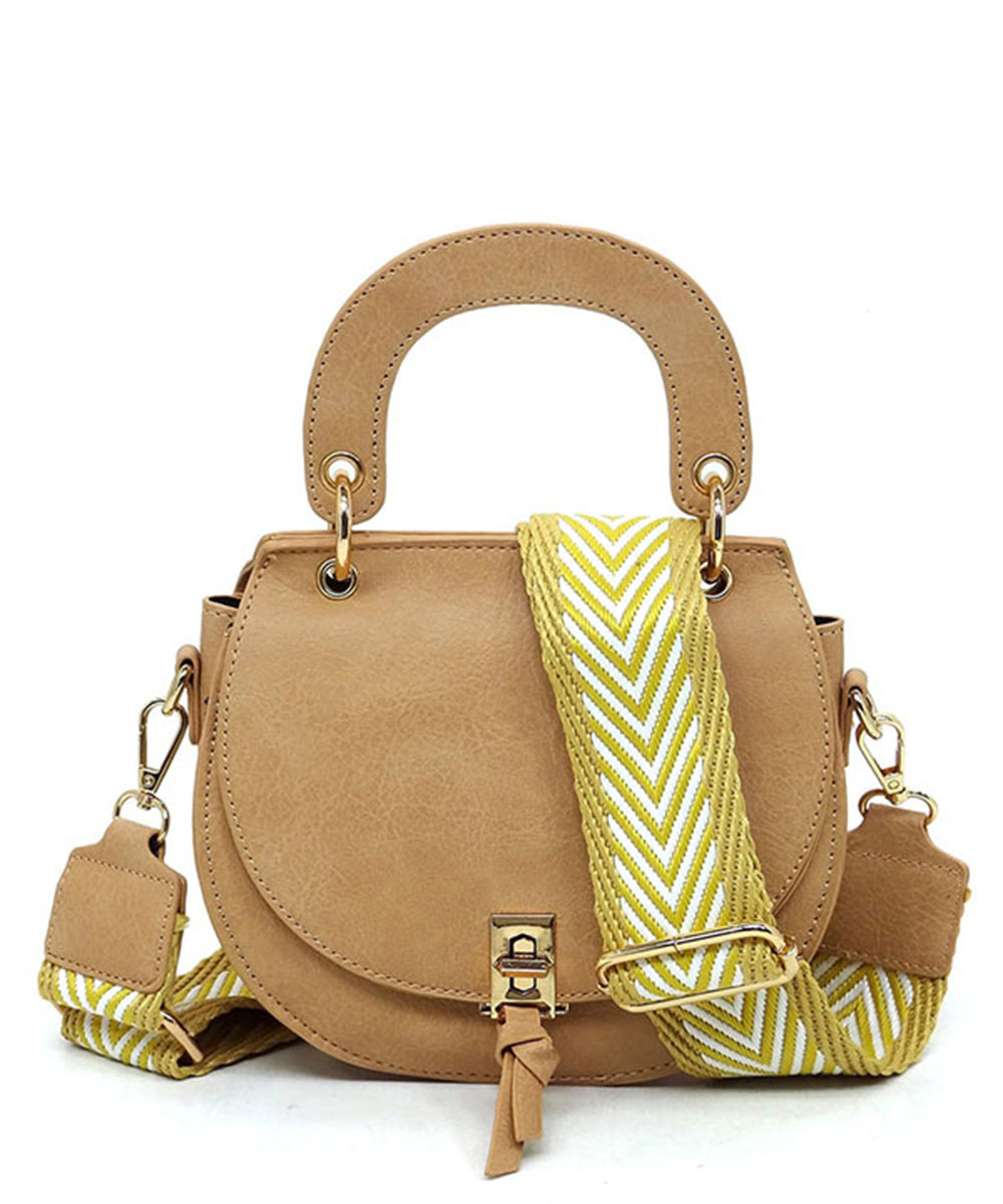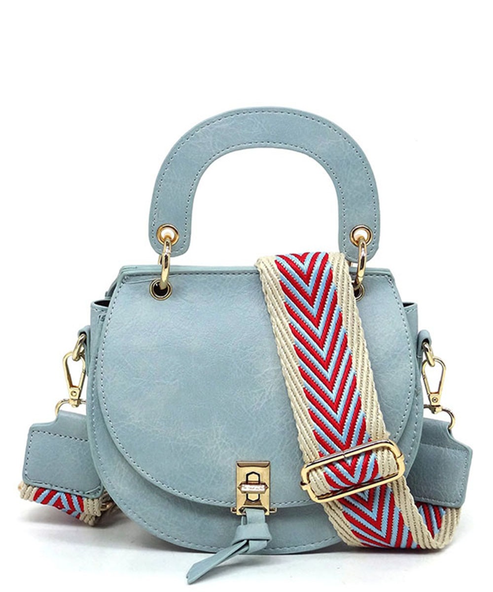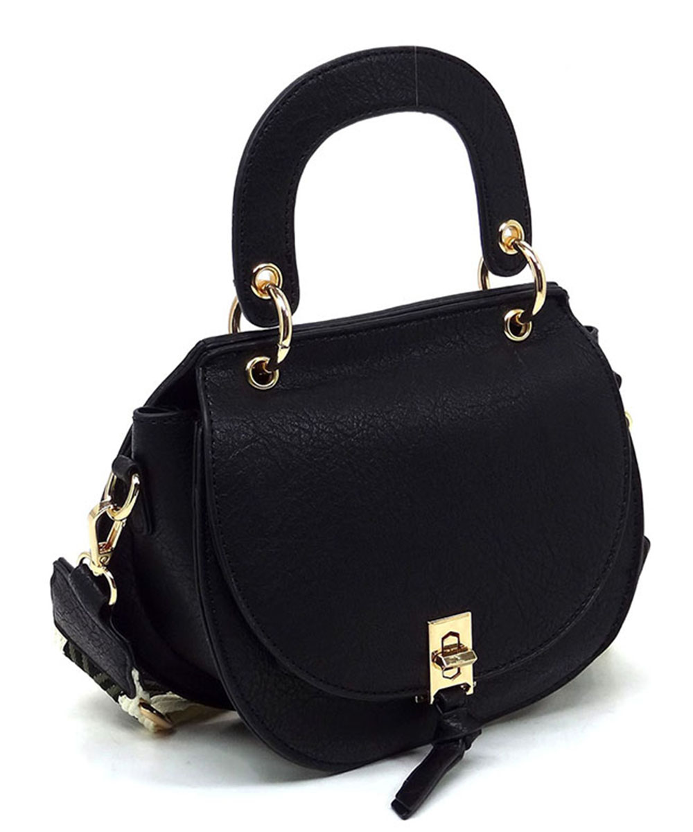 Embossed Woven Twist Handle Satchel LH123-Z BLACK