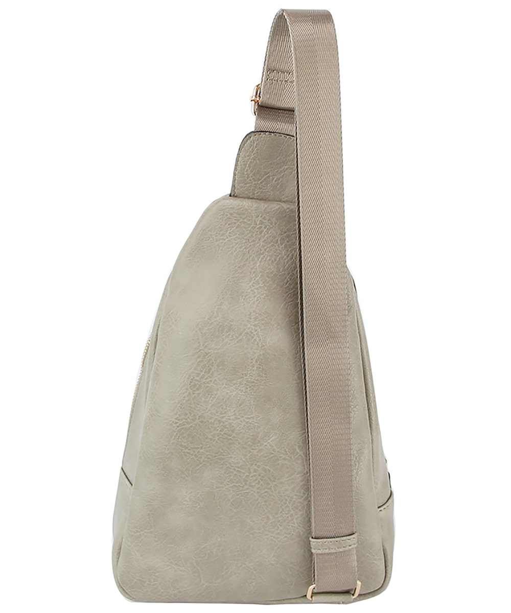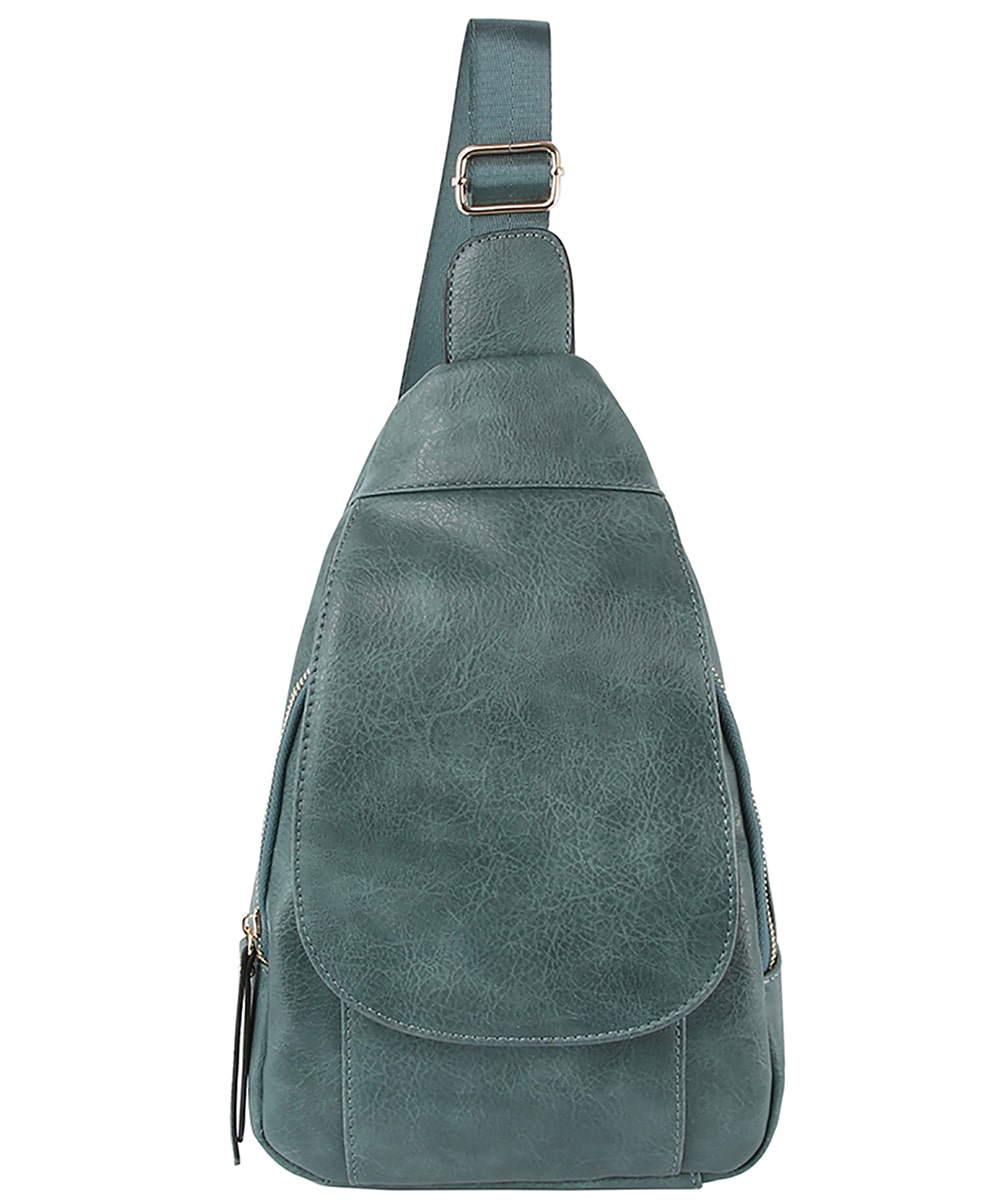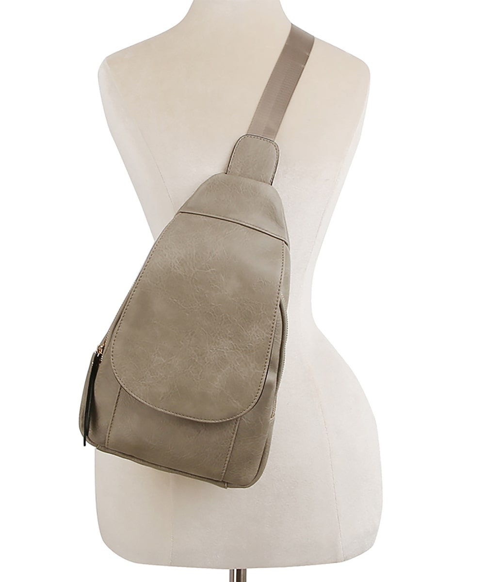 Fashion Flap Sling Backpack Faux vegan leather Zip top closure Gold-tone hardware Adjustable shoulder strap L 8.5 * H 13.5 * W 2.5